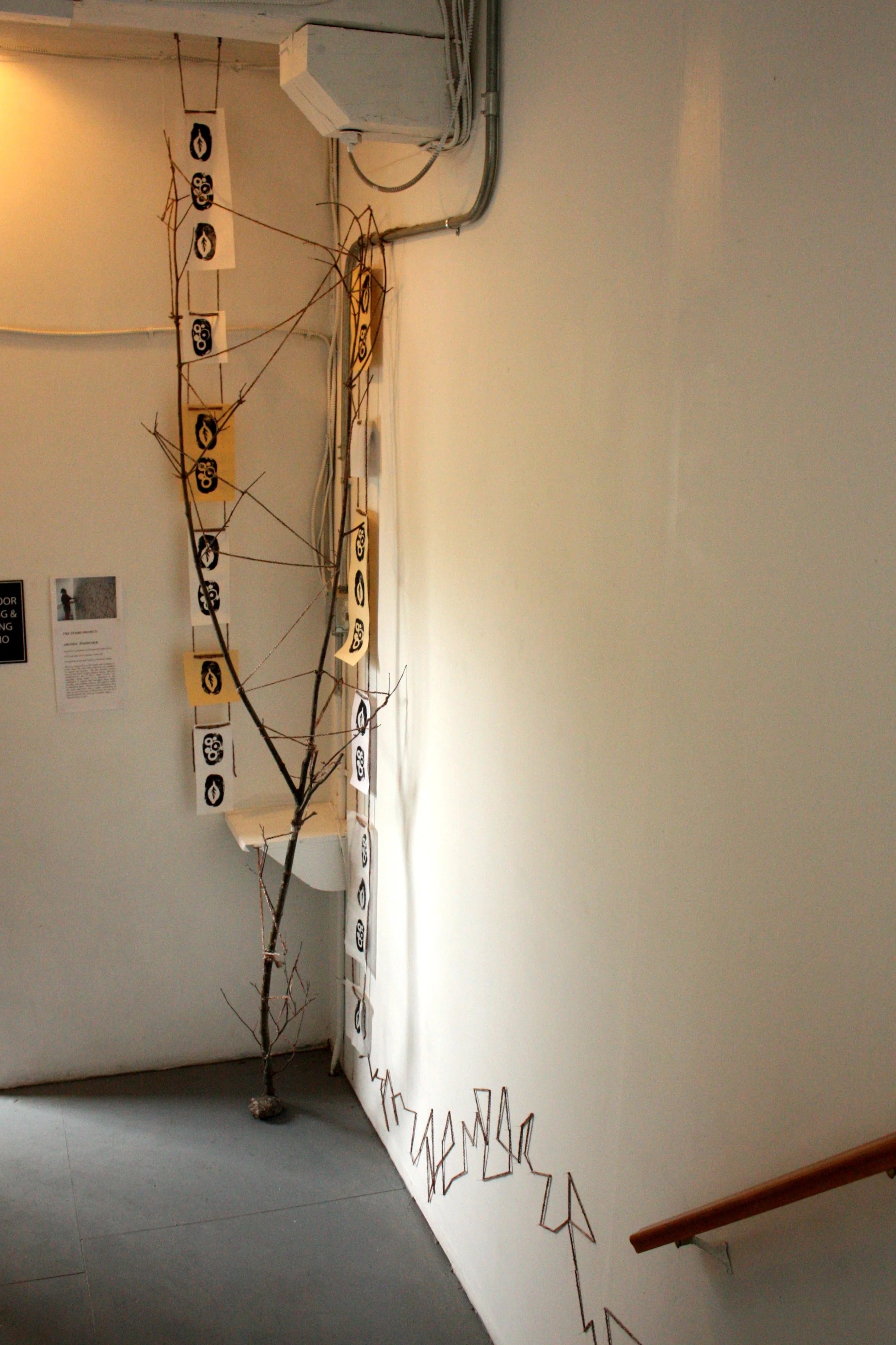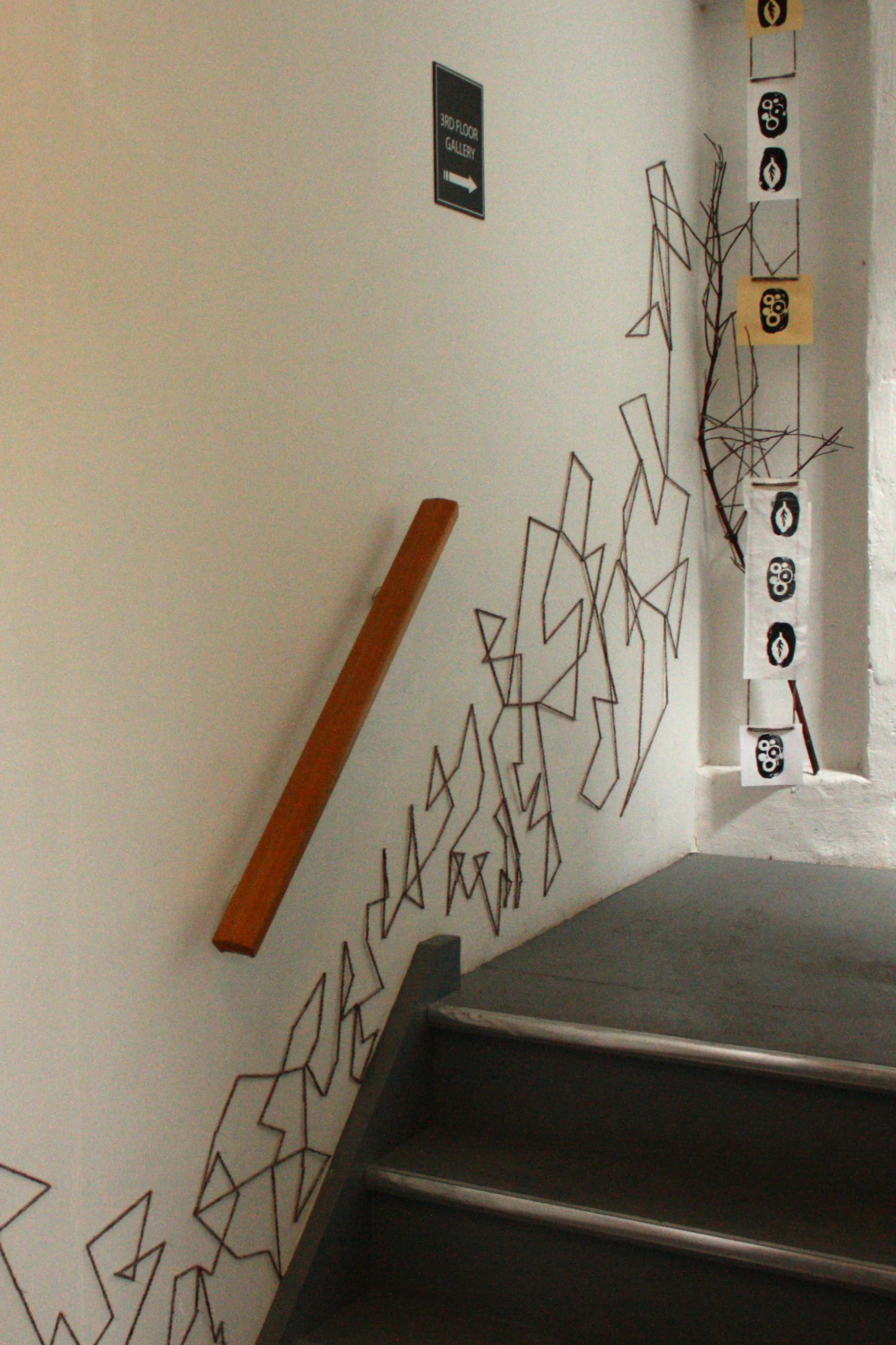 The installation I created was designed to make full use of the space provided to me, as well as to continue the momentum of viewers up the staircase towards the 3rd Floor Gallery.